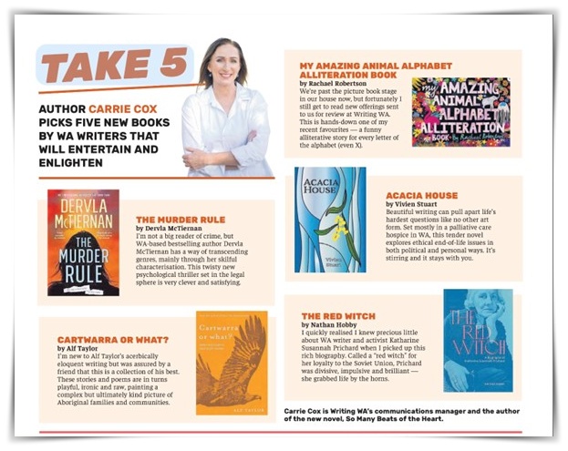 “Beautiful writing can pull apart life’s hardest questions like no other art form. Set mostly in a pallative care hospice in WA, this tender novel explores ethical end-of-life issues in both political and personal ways. It’s stirring and it stays with you.”